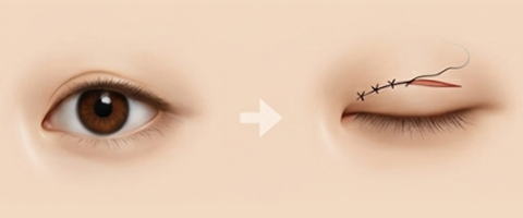 去除疤痕,并通过眼睑矫正术将线条下移。