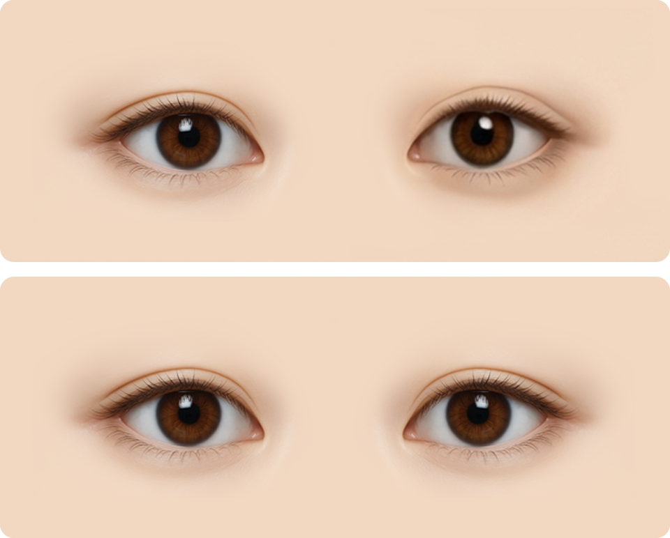 调整眼睑矫正量,以矫正睡眼惺忪感。