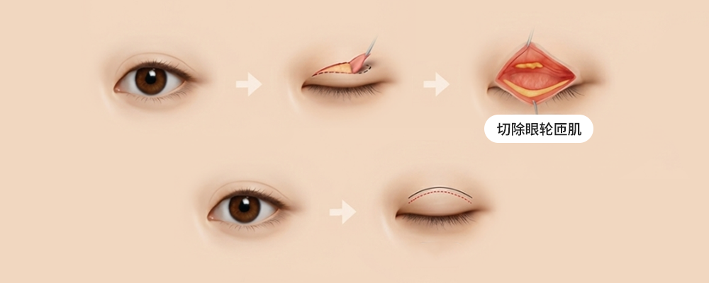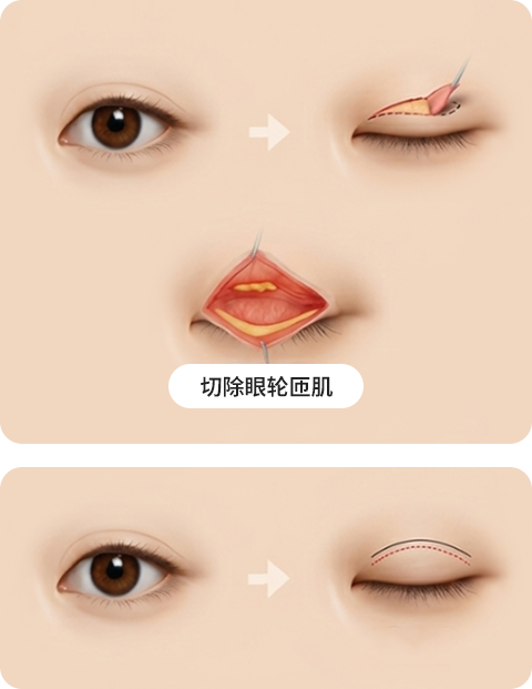 如有必要,可切除眼轮匝肌。