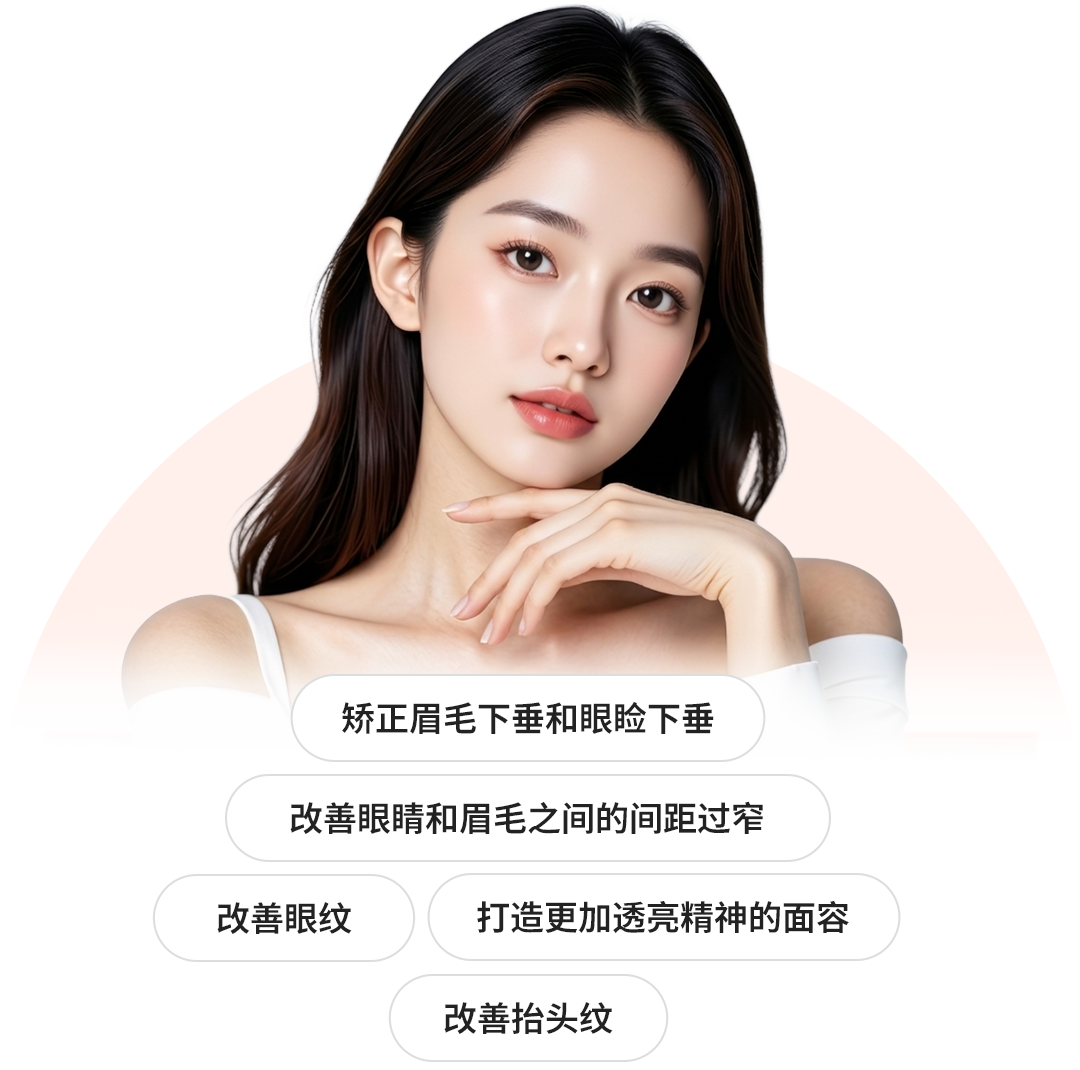 • 有效改善眼睑下垂、抬头纹和眉间纹。