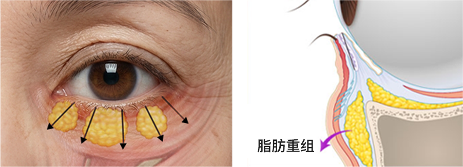 下睑脂肪重组术可矫正下睑脂肪分配不均,